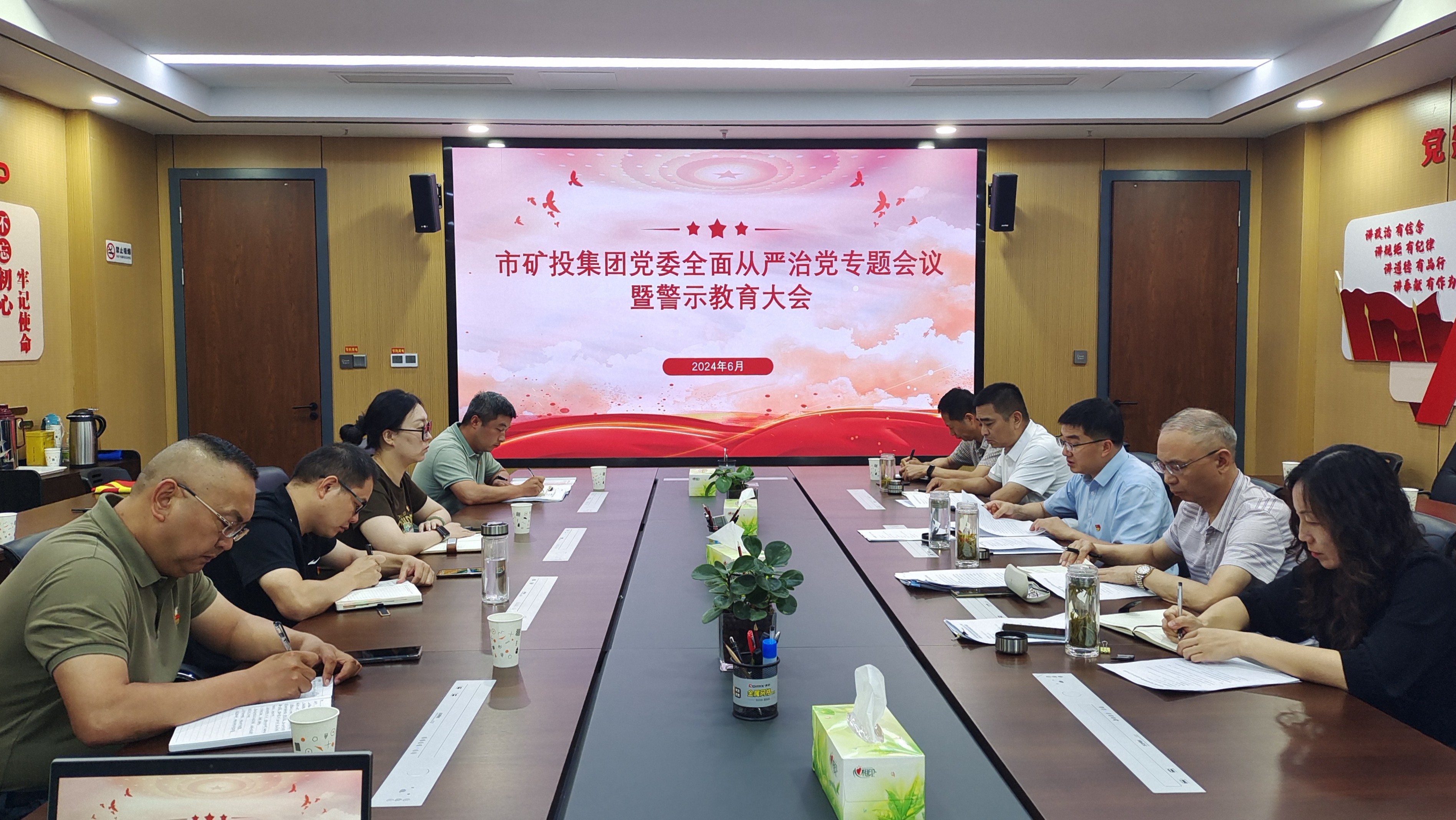 根據(jù)黨紀(jì)學(xué)習(xí)教育和“學(xué)黨紀(jì)、強(qiáng)作風(fēng)、提能力”大討論工作安排,6月28日下午,市礦投集團(tuán)黨委召開(kāi)全面從嚴(yán)治黨專題會(huì)議暨警示教育大會(huì),深入學(xué)習(xí)貫徹習(xí)近平總書記關(guān)于全面加強(qiáng)黨的紀(jì)律建設(shè)的重要論述,認(rèn)真學(xué)習(xí)全省以案為鑒以案促改除隱患保安全護(hù)穩(wěn)定會(huì)議和全市除隱患保安全護(hù)穩(wěn)定會(huì)議暨市委理論學(xué)習(xí)中心組會(huì)議精神。集團(tuán)公司黨委書記王峰主持會(huì)議,黨委班子成員及各子公司負(fù)責(zé)人參加會(huì)議。