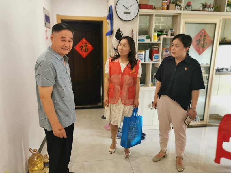 在凱迪塞納河畔小區(qū),志愿者們走進(jìn)困難黨員楊義平家中,詳細(xì)詢問(wèn)他的身體狀況和家庭收入來(lái)源,叮囑他在高溫天氣要注意身體,合理鍛煉、樂(lè)觀生活。