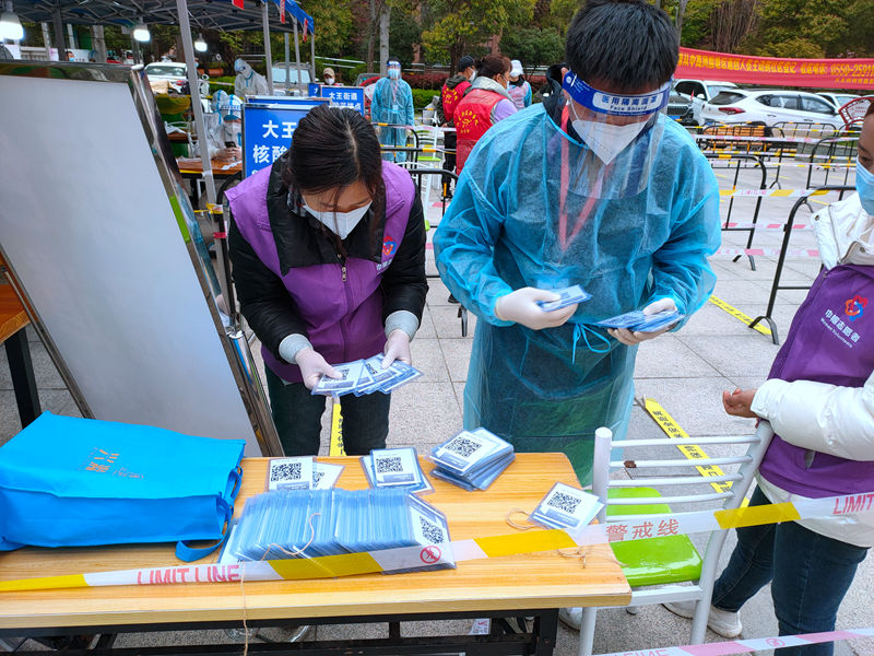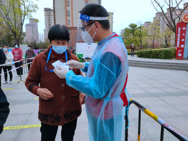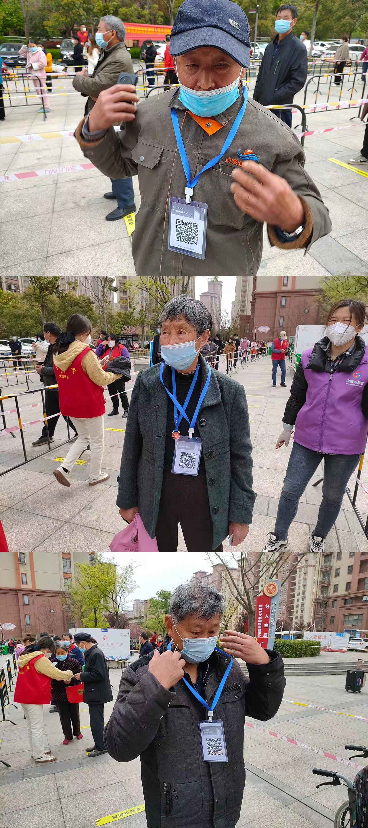 連續(xù)3天的志愿服務(wù)后,為進(jìn)一步優(yōu)化方式、提升效率,志愿者們利用1天短暫休息時間,收集所有手機(jī)中錄入形成的核酸檢測碼并分別打印制作成胸牌,于翌日分發(fā)至每位老人手中,有效減少了老人等待時間較長、人員易聚集等現(xiàn)象,從源頭上解決問題,讓“綠色通道”更加暢通,讓參加核酸檢測的老人體會到更加貼心、更高效率的志愿服務(wù)。