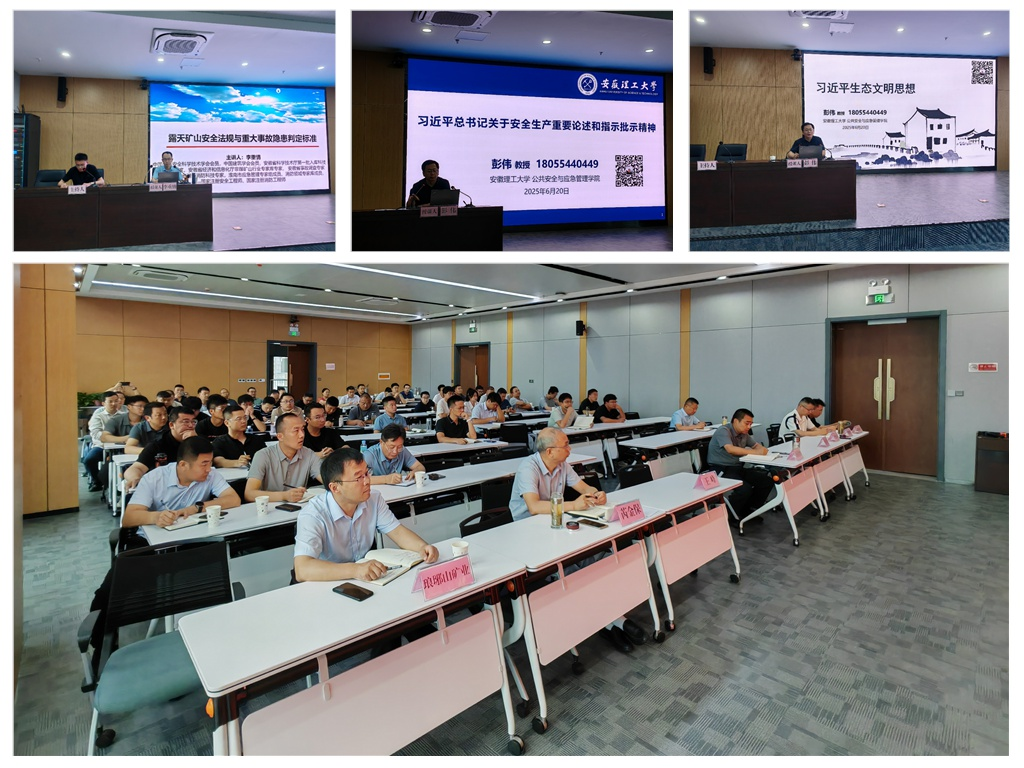 培訓(xùn)邀請(qǐng)了安徽理工大學(xué)公共安全與應(yīng)急管理學(xué)院副院長(zhǎng)彭偉、安全科學(xué)與工程學(xué)院研究生與實(shí)驗(yàn)室中心主任李重情進(jìn)行授課,課程包含習(xí)近平總書(shū)記關(guān)于安全生產(chǎn)重要論述、習(xí)近平生態(tài)文明思想、礦山行業(yè)有關(guān)安全生產(chǎn)法律法規(guī)、《金屬非金屬礦山重大事故隱患判定標(biāo)準(zhǔn)》等內(nèi)容。