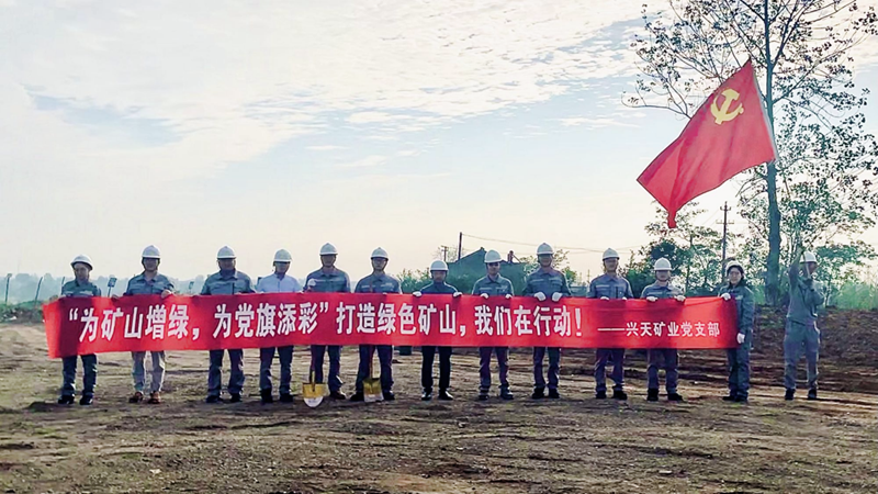 綠色礦山,黨員先行。興天礦業(yè)黨支部深入貫徹落實習(xí)近平總書記關(guān)于生態(tài)文明建設(shè)重要論述,于9月22日開展了“為礦山增綠、為黨旗添彩”主題黨日活動。植樹活動現(xiàn)場,黨員干部帶領(lǐng)公司職工分工協(xié)作、互相配合,揮鍬鏟土、扶直苗木、培土圍堰,道道工序一絲不茍,場面熱火朝天。